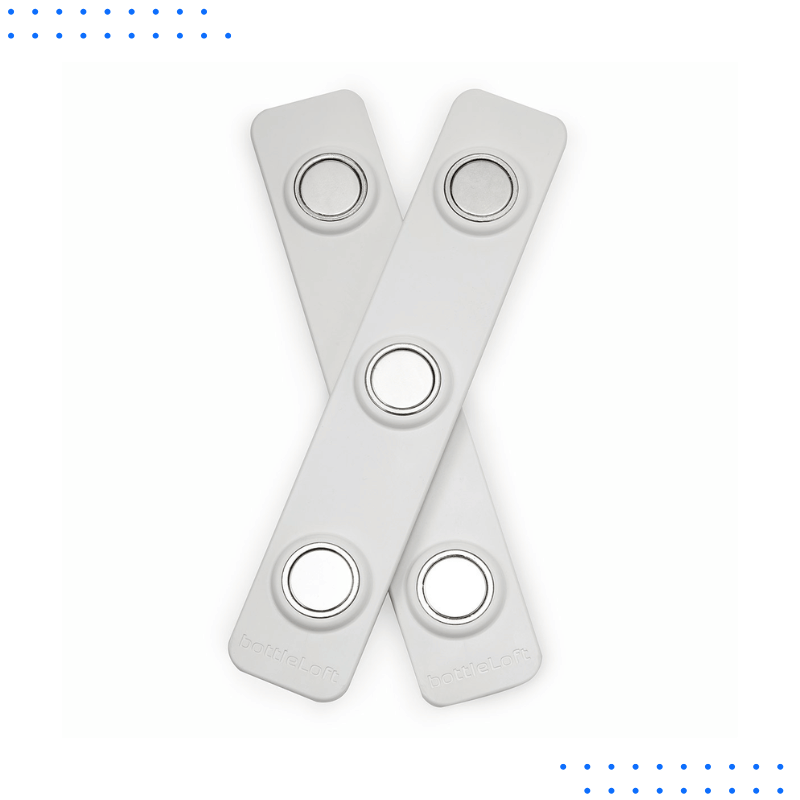 Powerful neodymium magnets securely hold up to 6 bottles in place.